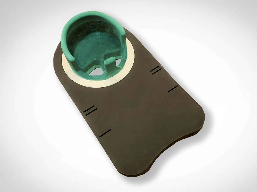 The patented Baby on Board floatation device allows young children the ability to be in the water with their parent or guardian. This is ideal for the infant and guardian, as swimming or working out when watching a young child can be difficult. The seat rotates to allow the child more freedom while in the water. The Baby on Board will be US coast guard certified and ensures the child’s safety by having the board strapped to the guardian. This client’s idea was conceived from a mother who wanted to work out in a pool. She wanted to exercise but finding the time to with an infant was a difficult task. She developed the baby on board to allow mothers to swim and spend time with their child. Safety was a main concern while developing this product. The seat contains air pockets to prevent it from sinking and the holes in the foam board hold a belt that straps to the adult’s waist which prevent the board from drifting away. The client is currently in the process of getting this board Coast Guard certified and then intends to begin mass manufacturing.