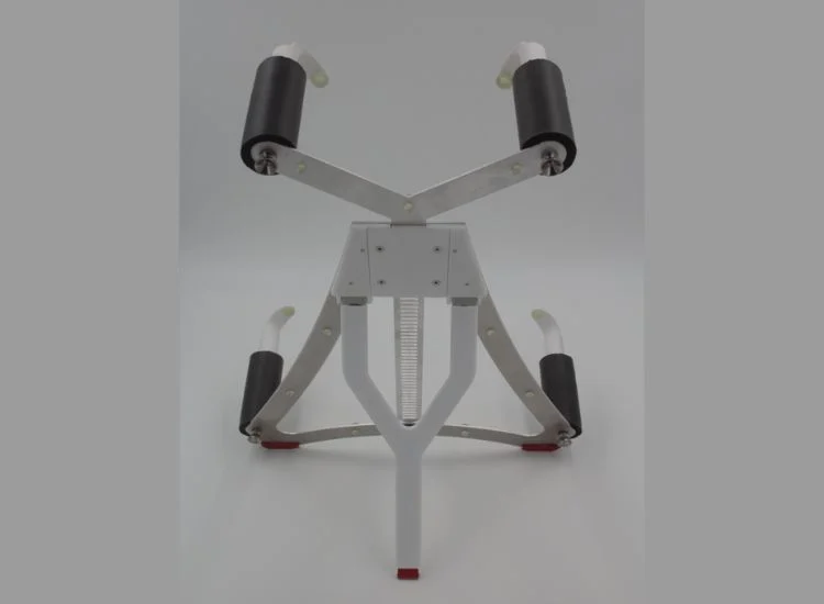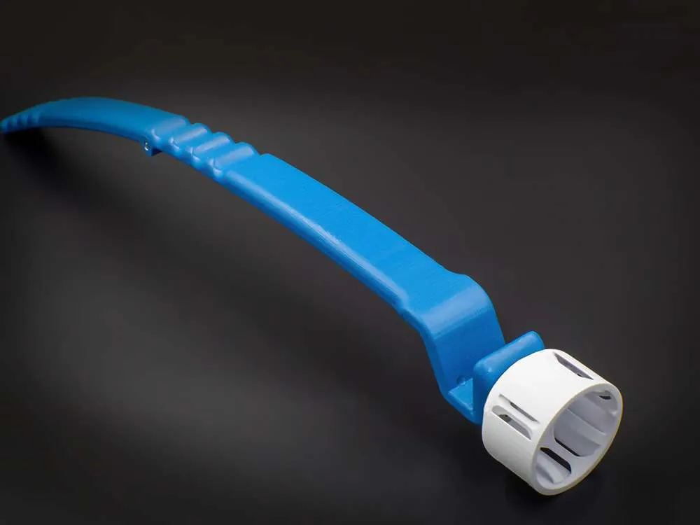The Roll on Buddy is an adjustable stick that allows users to apply their own roll on solutions to their back. It was designed for use with roll on pain relievers and menthol topical products. The Roll on Buddy can return independence to those struggling with back pain and removes the need for application assistance. The handles can be adjusted to three angles so users can easily reach different parts of their back. This client wanted to fill a niche that she thought was empty. She wanted to provide an easier method for people to apply roll on products to their own backs and not rely on assistance. This product took around three months to complete. The cup on the end is designed to hold various sized containers.